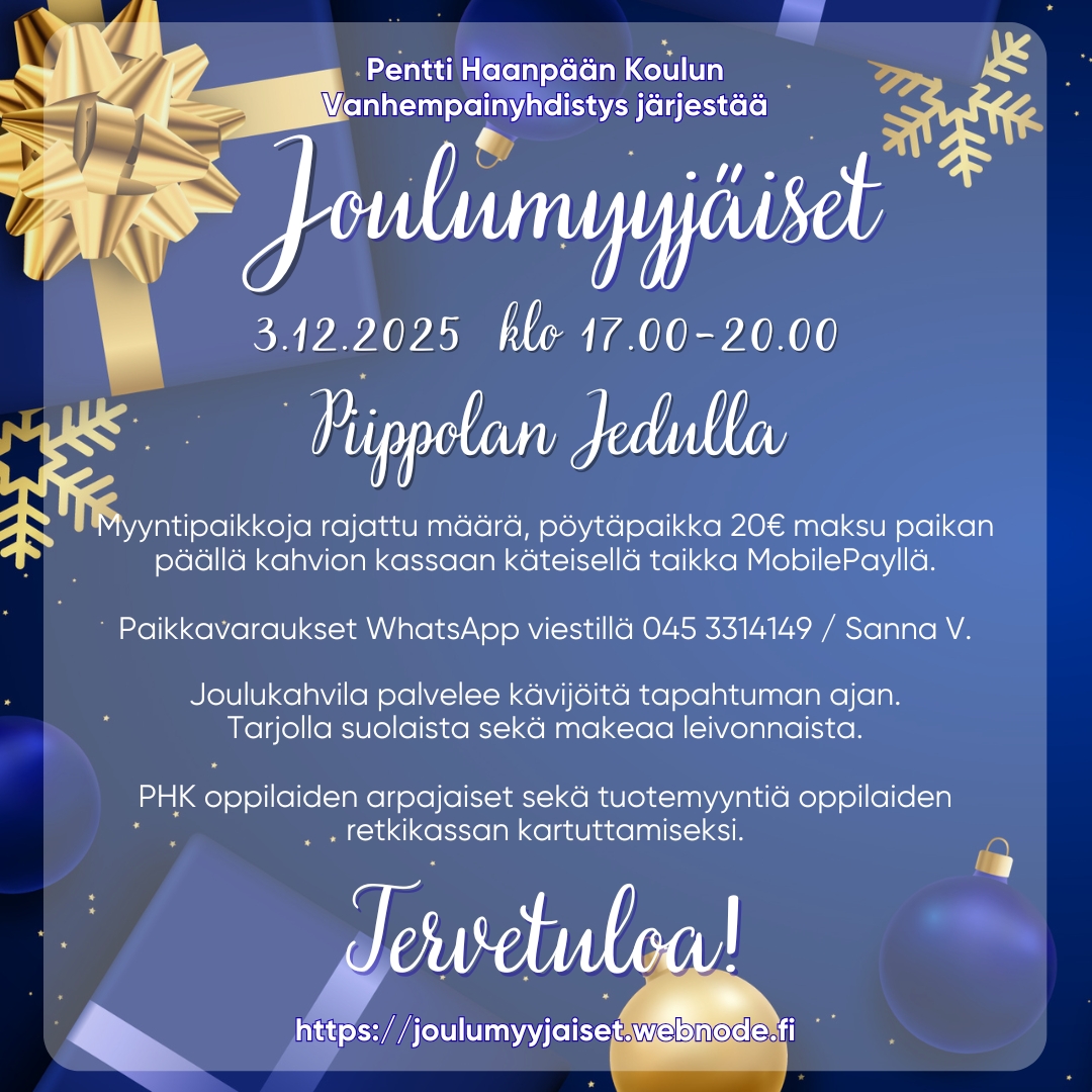 PHK Joulumyyjäiset järjestetään tuttuun tapaan, Piippolan Jedulla.