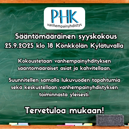 PHK vanhempainyhdityksen syystervehdys!